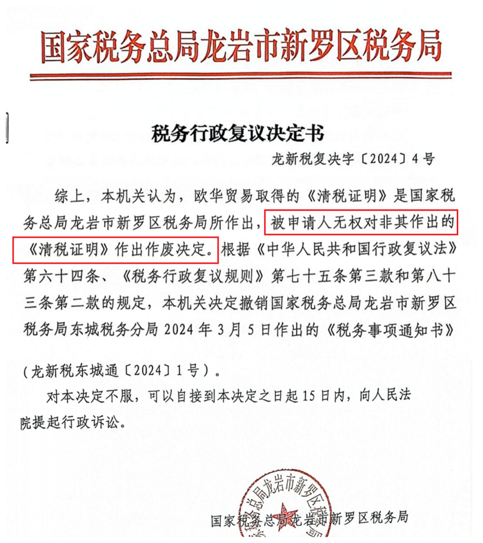欧华公司原股东认为龙岩税务多处违法