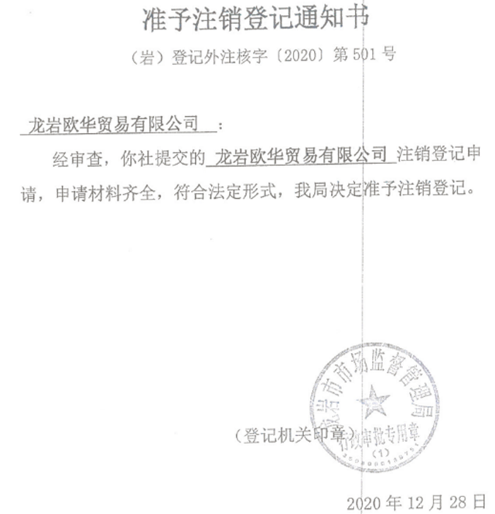 香港商人李先生是原深圳欧华高科有限公司法人代表,据他介绍:2020年,响应龙岩市新罗区招商引资,迁入龙岩市新罗区,成立龙岩市欧华贸易有限公司(下称:欧华公司)。同年 11 月 10 日,在新罗区税务局和龙岩市税务局稽查局的同意和指导帮助下,原龙岩欧华公司完成了注销前的所有税款申报,包括经营期企业所得税核定征收申报和清算期企业所得税申报。相关资料显示,附加税费纳税申报表的受理税务机关为龙岩市税务局稽查局,企业所得税申报表的经办人也是龙岩市稽查局人员,欧华公司于 2020 年 12 月正式注销,股票通过“非交易过户”方式转到李先生和李女士个人名下持有。值得注意的是本次稽查的主检查人员就是当时办理清税手续的人员。