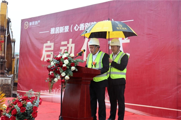 宣誓完毕,由新景地产董事长彭总宣布雅居新景项目正式启动,现场工程机械一齐鸣笛开机作业,机声隆隆,气势如虹。