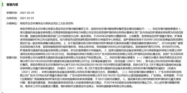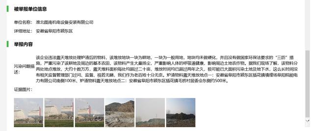 村民针对炉渣问题在生态环境举报网站进行了举报。