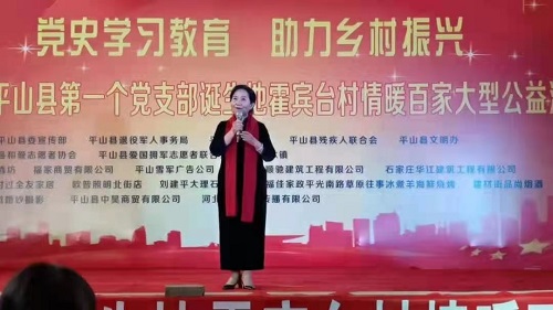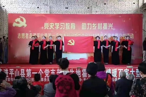 活动上,中共平山县委宣传部副部长郜金龙在致辞中表示,在全县开展党史学习教育之际,举办此次党史学习教育,助力乡村振兴,情暖百家公益活动,具有重要的现实意义。我县拥有辉煌的革命历史和光荣传统,涌现出无数个英雄模范。他们鼓舞着一代又一代老区人民,在建设社会主义祖国的伟大征途上艰苦奋斗,发奋图强,为彻底改变家乡面貌,实现全民小康,推动社会主义精神文明建设,产生了极大的促进作用。要牢记革命历史,赓续红色传承,珍惜今天的幸福生活。要最紧密地团结在以习总书记为核心的党中央周围,不忘初心,砥砺前行,为实现中华民族伟大复兴的中国梦而努力奋斗。
