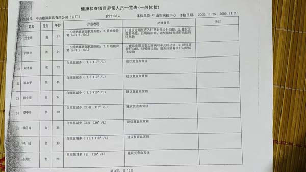 2008年6月,申请人进入位于中山市板芙镇工业区的被申请人中山福溢家具公司工作,其工种是油漆喷漆工,并且交了社保。2009年11月25日,被申请人公司组织有毒有害职业健康检查,做检查的医疗机构是被申请人中山市疾病预防控制中心,当时申请人的检查结果显示:白细胞减少3.41和中性粒细胞减少1.68。两项都达到了“白细胞减少症”标准,检查报告上面也写明了“要复查血常规”。可是被申请人(中山福溢家具公司和中山市疾病预防控制中心)没有把检查结果告诉申请人,没有履行告知义务,故意隐瞒申请人的检查结果异常真相,其行为有明显过错,违反了2002年5月1日执行的《职业病防治法》第三十二条、第四十九条,《职业健康监护管理办法》(卫生部令23号,2002年5月1日执行)第八条、第十五条第二项、第三项,《健康体检管理暂行规定》(卫医政发〔2009〕77号)第十一条等相关的规定。以上的法律都规定了要把检查结果告诉申请人,可是被申请人根本就没有履行以上的法律责任,没有履行告知义务。