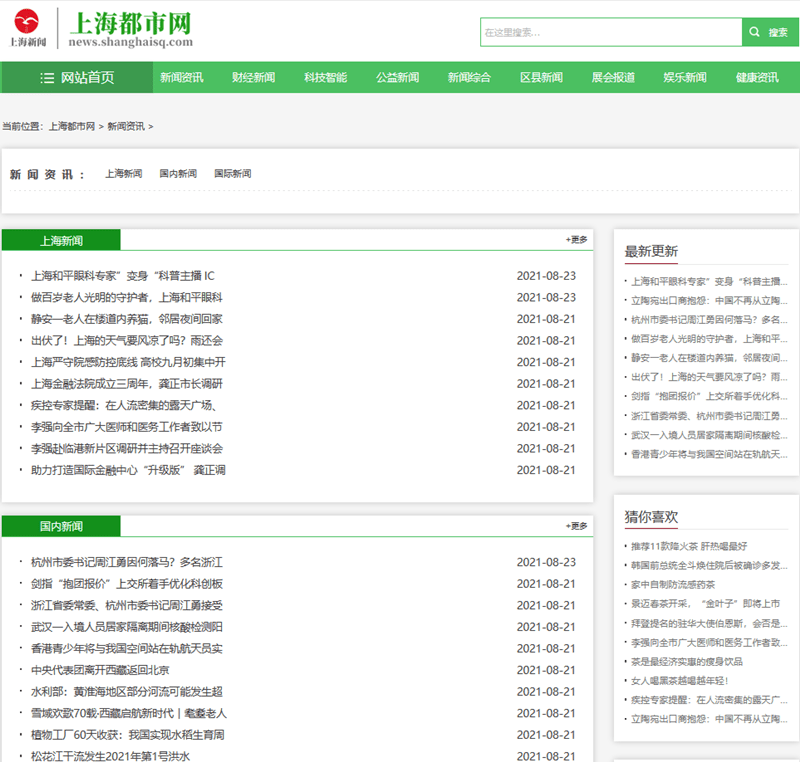 上海都市网新闻频道界面