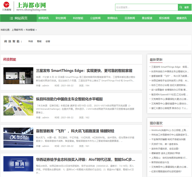上海都市网科技频道界面