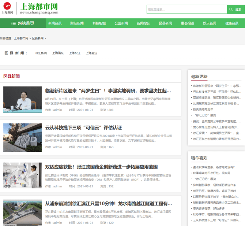 上海都市网区县频道界面