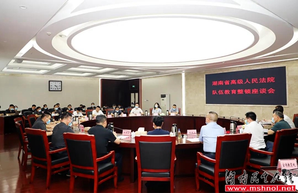 ▲湖南省高级人民法院队伍教育整顿座谈会现场