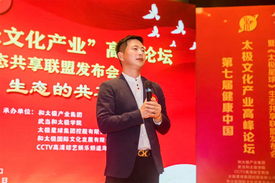 何俊龙先生作为“健康中国太极文化产业”高峰论坛的发起人,首先对全体嘉宾、企业家、太极星球各联盟代表以及和太极家人的到来表示热烈的欢迎!对大家多年来一如既往的支持中国太极文化产业的发展表示衷心的感谢! 他表示,或许各行各业都有自己企业的文化,但唯有太极文化是共享的,太极乃万物之魂 。太极植入个体,可以达到身心健康;植入家庭,可以使家庭更加和睦;植入企业,可以让企业实现“五脏”自然相生运转。