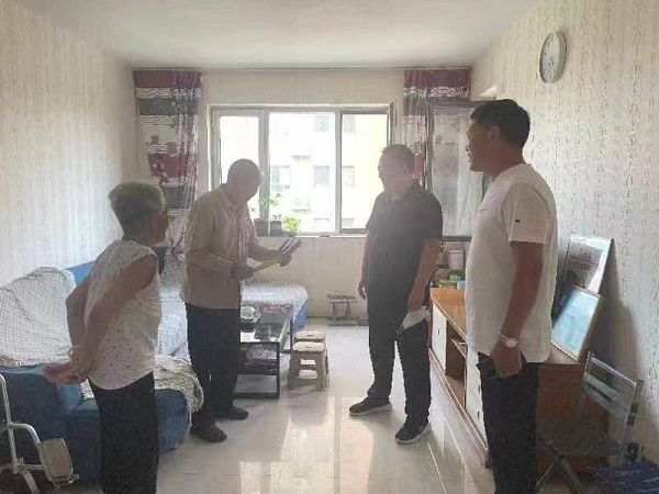 在东静庵南街复员老军人禹建华老人家中,党委副书记、主任张立辉紧挨禹建华老人坐下,紧握着他的手,同他和家属亲切交谈,叮嘱老人多保重身体,有困难及时向村里和办事处反映。并一起追忆当年峥嵘岁月,感谢他在战争年代为祖国做出的贡献,向他致以节日的祝福和崇高的敬意。张立辉说:“您是人民的功臣,您做出了很多牺牲,我们永远以您为榜样。党和政府永远不会忘记您的。”禹建华老人感激地说:“谢谢张主任百忙之中还来看望!感谢党和政府的关心,现在住得好、吃得好,不用惦记的。”