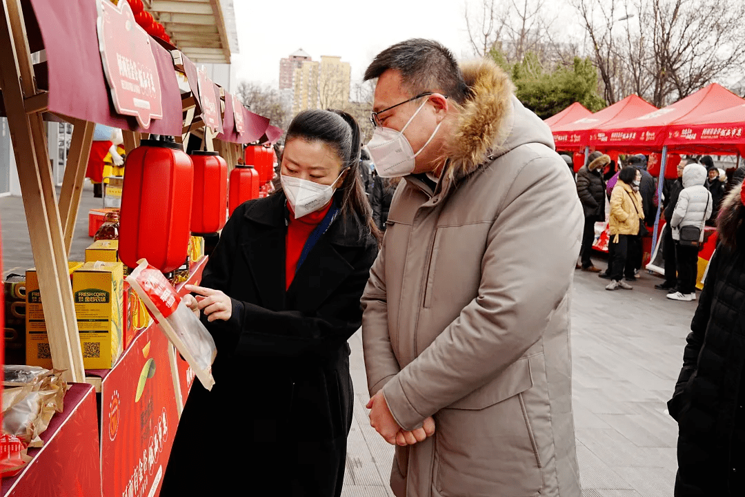 受松雷集团董事长曾庆荣委托,松雷文创集团、北京何所有国际商业集团副总经理刘于介绍了黑土优品“何所有金谷优品市集”特色。市集在何所有酒店内和门前广场布展营销,致力于打造场景化、接地气、有活力、聚人气的主题促消费活动。结合北京年文化消费特点,“农文旅”赋能,精心挑选黑龙江生态品牌产品“黑土优品”、农投集团“金谷农场”产品和松雷“何所有”文创产品聚集。 将黑土优品、非遗传承、创意手工、餐饮美食、城市书房等多种业态融入市集,为首都人民带来“最优、最绿、最香、最安全、最时尚”的农产品和文创产品,构建“商业+农文旅+体验”新消费场景。以喜庆、祥和的中国年氛围,拓展丰台区东铁匠营街道“一带五桥”街区文化旅游、休闲娱乐融合发展商圈,打造京南特色消费新场景。