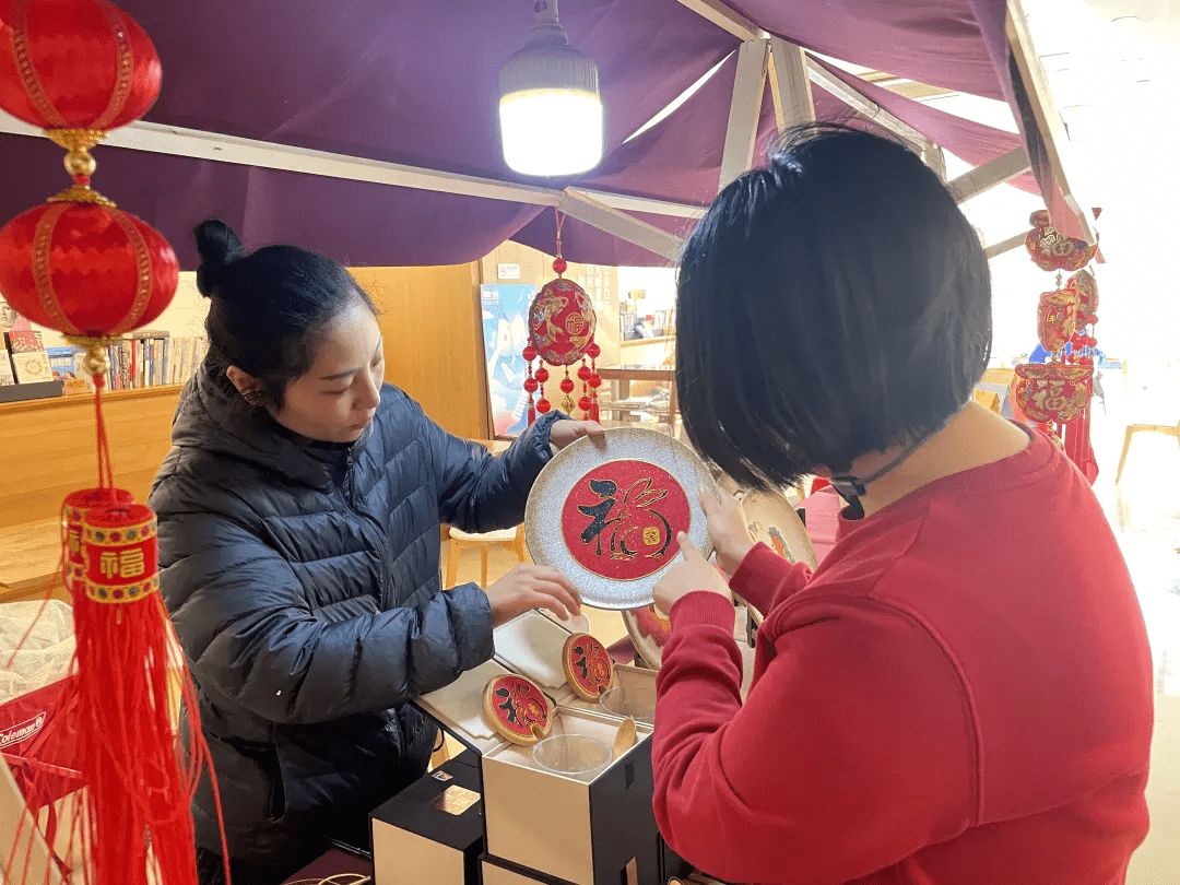 市集还设有面塑、扎染、金丝珐琅画等非遗体验区,非遗爱好者们可以近距离感受流传千年的非遗魅力,更加深入地了解非遗技艺,学习相应的制作过程。何所有金谷优品市集致力于让赶集人真切地体会到逛市集的乐趣,感受新春的喜庆氛围。