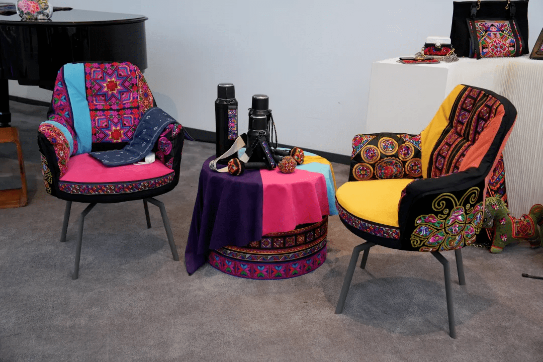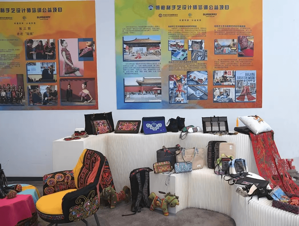 博柏利手艺设计师培训公益项目的创新转化非遗产品,亮相何所有金谷优品市集。展示了来自苗族、畲族、瑶族女性的智慧结晶与创新活力,让观众感受到了公益事业助力乡村振兴的促进作用。
