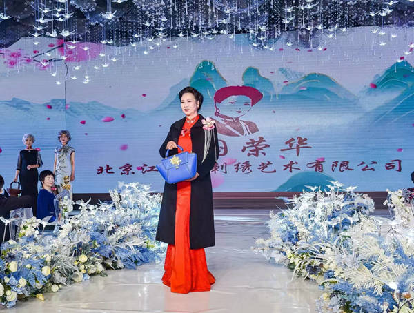 悠然走向舞台的模特,身着红色改良旗袍,手持绣绷,展现了后疫情时代女性的“自尊、自信、自立、自强”,绽放出追求美好生活的笑颜。她们也诠释了江选民绣艺大师的服装、服饰的时尚与传统的完美结合。
