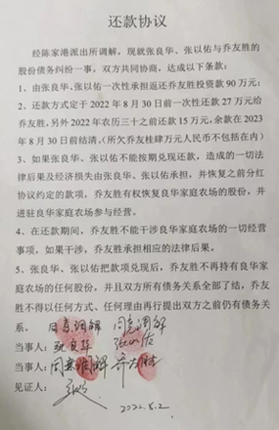2022年8月2日,他们又到场里闹事。当时我报警,对方被民警带走。之后,在各种压力下,我们被迫又签下了这种显失公允的协议。因为我场里当时有2000头母猪要转运,报案又不予立案,才被迫签下这不平等的协议。这让我感到欲哭无泪,苦不堪言。