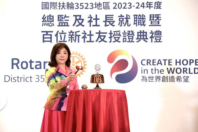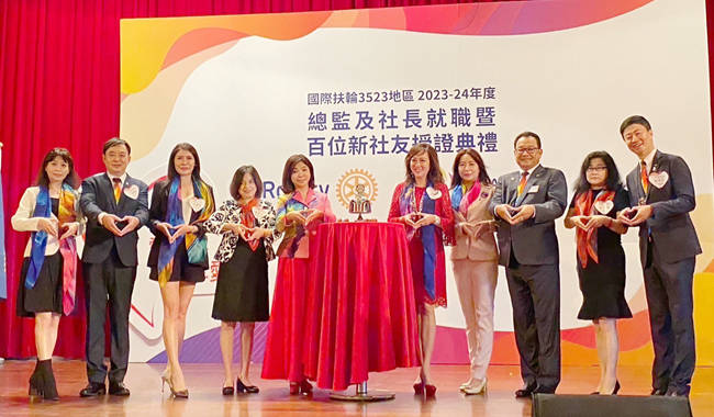 国际扶轮3523地区2023年7月1日于台北圆山大饭店举办2023-24年度地区总监及社长联合就职典礼暨新社友联合入社授证典礼,由地区杨奕兰总监率领80位3523地区扶轮社社长联合就职,同时举办百位新社友联合入社授证典礼,会场超过500位扶轮重要领导人以及各界嘉宾人士共同参与,场面隆重热烈。