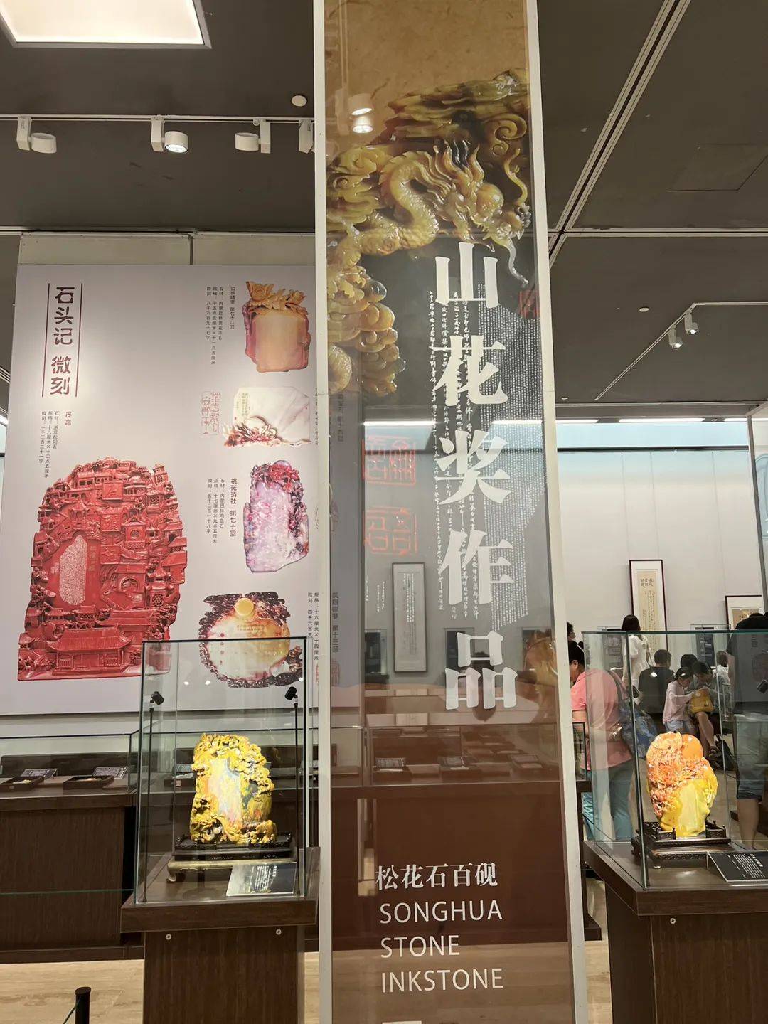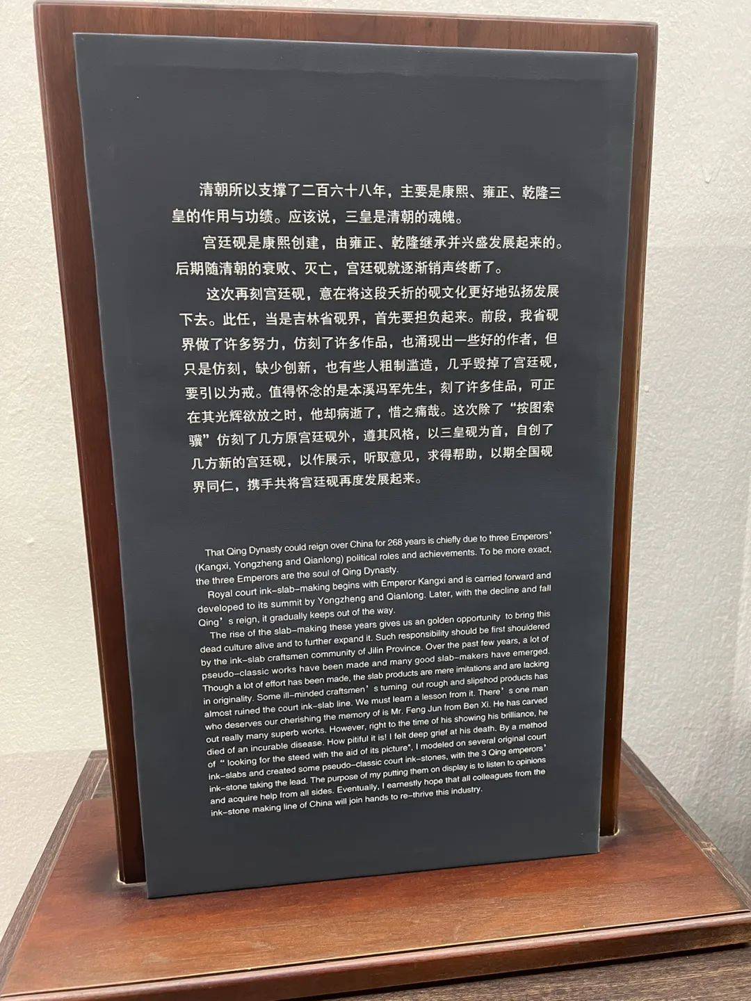 本次展览主要包含三个部分,分别展示彭祖述原创的100方松花砚作品及拓片题跋书法作品,《石头记微刻》的部分作品30块,彭祖述、彭沛父子十余年收集整理并请吉林省内专家共同研究、推荐的部分松花石样板石180方。