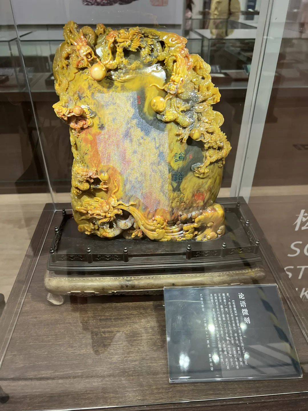 其中,《石头记微刻》是彭祖述历经十载呕心沥血完成的精品之作。这部刻在82块中国各地名石上的微刻石书一经问世即引起国内外广泛关注,微刻文字大小约为小米粒的六分之一,共60多万字。这一将古老艺术形式与诗、书、画、印融为一体,形成具有综合艺术特色的新作品,深受业内外人士称赞。