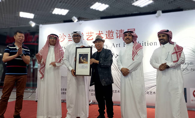 此次利雅得——中沙当代艺术邀请展活动中得到了两国当代艺术机构及组委会的赞赏,并给予海涛先生鲜明的艺术创作风格和对中沙文化交流做出的巨大贡献颁发了沙特王国“星月”艺术奖,表彰其在推动传统文化资源创格型转化,艺术当代思潮普世化发展所作出的努力。在东西方之间、在传统和现代之间、在中阿文化价值观交融的新艺术语境中拓展,重塑着中亚一衣带水文化空间的审美格局,携带着两国古老传统价值回归的优秀遗产一起在丝路新时代共镶中阿艺术篇章。