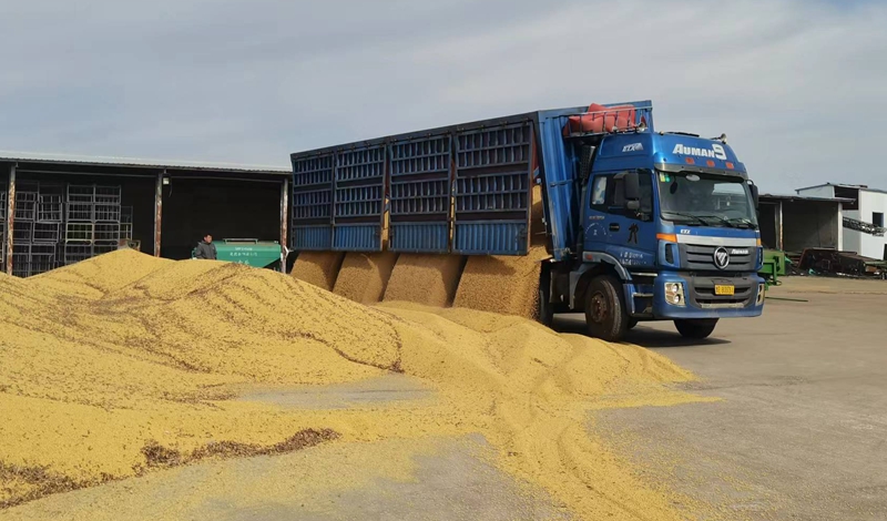 今年,分公司统管队的5万亩大豆平均亩产达402.6斤,平均水分12.3;3.1万亩玉米平均亩产1305.47斤,平均水分25.3,容重760 - 780。其中,大豆单产创下建场以来的最佳成绩。