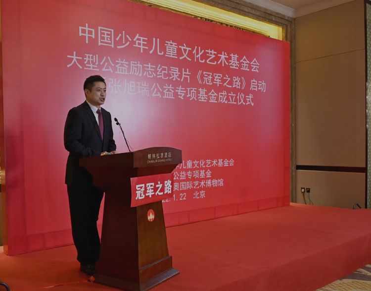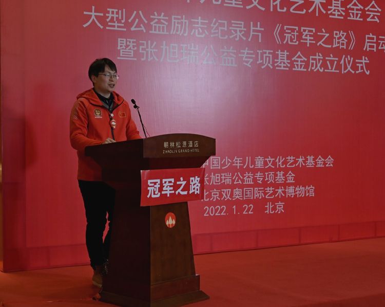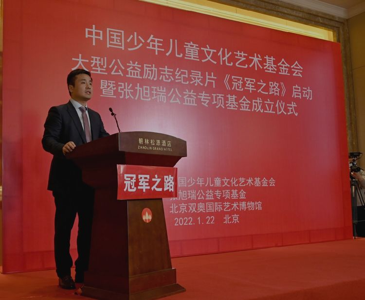 2022年1月22日下午,为迎接北京2022冬奥会的举办,大力弘扬中华体育和奥运精神,鼓励少年儿童学习奥运冠军和世界冠军的励志精神,大型公益励志纪录片《冠军之路》启动仪式在北京市朝林松源酒店隆重召开,中国少年儿童文化艺术基金会(以下简称“中国儿艺会”)张旭瑞公益专项基金成立仪式同步举行。