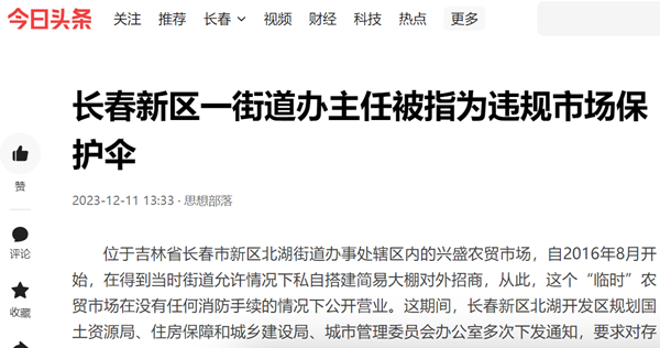 有市民称,兴盛农贸市场的经营者之所以能够“安然无恙”,这完全仰仗于长春市新区北湖街道办事处主任刘叔杨的大力支持。还有市民表示,只要刘叔杨在新区北湖街道办主任这个岗位上不离开,兴盛农贸市场就可以一直屹立不倒。