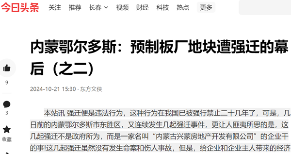强迁之时,时刻都会有血案甚至是命案发生,在国内这样的案例简直是不胜枚举,所以,企业没有强迁权,政府强迁也得有法院判决为前提早已纳入国家的法律,这一点,在中国也是用多条人命换来的。但是,时到今日,这家兴蒙公司为何跳出来自己搞强迁?其背后又有什么不为人知的事情?当地政府又在此事件中扮演着什么角色呢?