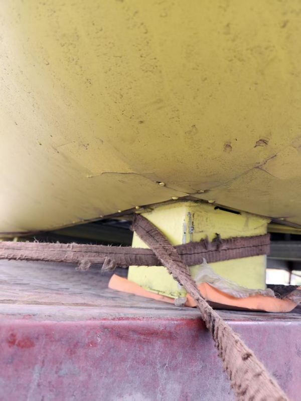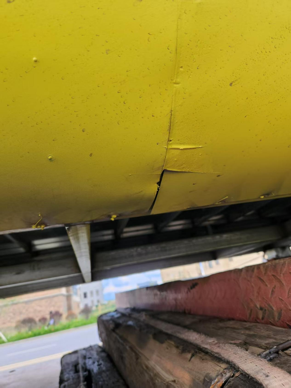 图为:巧筑集成公司售卖的广场活动餐车合同约定是金属漆,而实际的却是化工合成漆,产品底部破败不堪。