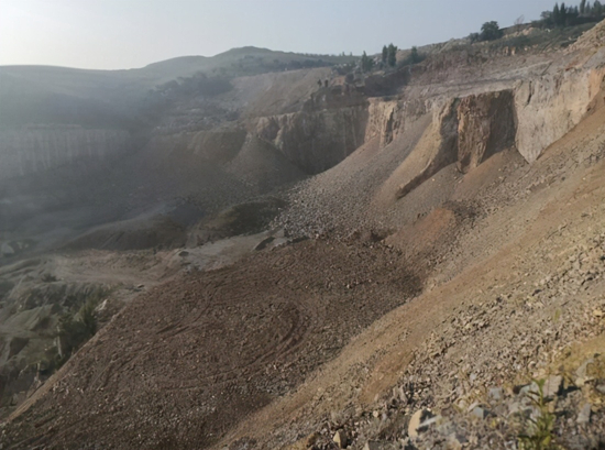 9月16日,上午八时许,记者沿兖石公路驱车至坦埠镇政府。然后左转,沿着一条乡间公路南行两公里左右,便行驶到了东河南村南山山坡。放眼望去,满目疮痍,哪有绿树青山。知情人指着一个巨大的深坑告诉记者,那里原是一个山岗,栽满了大大小小的树,其中数十年的松柏树就有上千棵,而自从2011年起,这里的生态开始遭到破坏,因为包某的采矿队进驻到了此地。自此,无证非法盗采国家石灰石资源的序幕便拉开了。历经九年,这里的青翠山岗不复存在,数千棵长青树木消失殆尽,仅留下近百米深坑诉说着昔日的荣耀和今日的无奈。