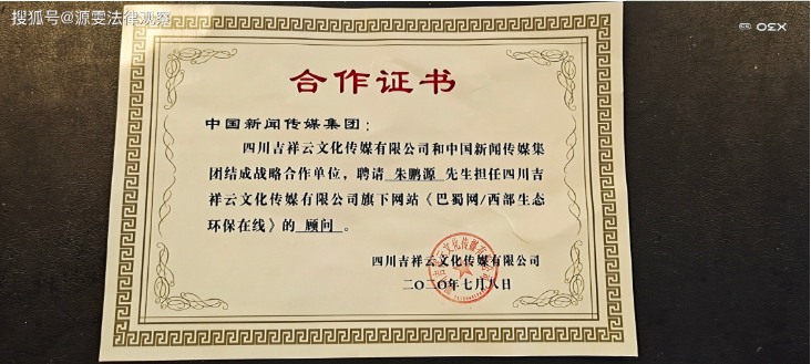 中新传媒网成都7月11日电(首席记者 华燕雯)今日,中国新闻传媒集团收到四川吉祥云文化传媒有限公司的合作证书,该公司和中国新闻传媒集团、复兴通讯社结成战略合作伙伴,同时聘请中国新闻传媒集团总编辑兼复兴通讯社社长朱鹏源先生,担任该公司旗下的《巴蜀网》和《西部生态环保在线》顾问。