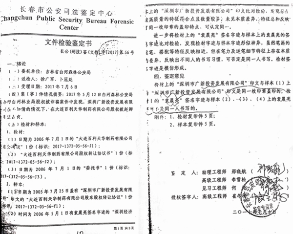 经我们举报,在甘井子分局对该案调查过程中,委托了广东南天司法鉴定检验中心【深圳】鉴定机构,该《借款合同》系伪造。