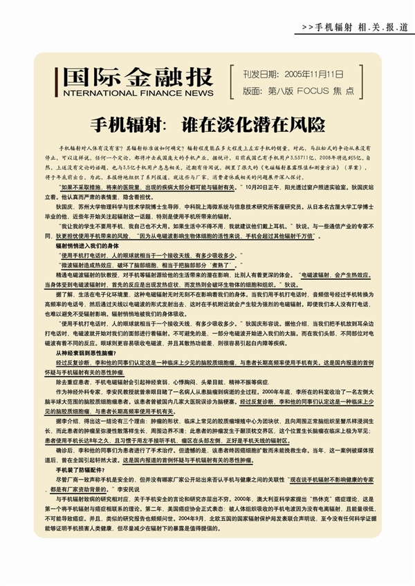 如今,手机不离身已经成为现代人的常态,看不见的手机辐射和蓝光,正在无时无刻不在蚕食手机用户的生命健康,金益防手机辐射,源头健康脑和眼。手机辐射你可以不信,但不可不防。希望越来越多的人都能把生命安全和健康放在第一位,倡导健康地拥有财富,深入了解到手机辐射对人体的危害,注重手机辐射的防范,使用上真正的金品质、高价值、高性价比的【金益】牌千足金手机防辐射产品。正如【金益】企业的愿景一样,消除手机辐射,让每一个人安全、健康地使用手机! ★了解更多,请搜索中文网址:中国手机防辐射.手机 附:权威媒体