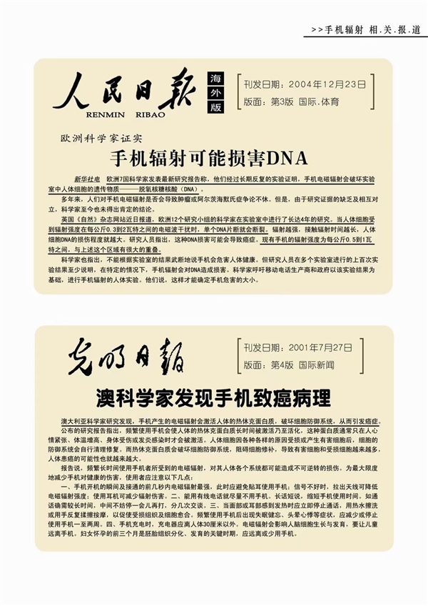 手机辐射正在偷走你的生命。这绝对不是危言耸听。如今,智能手机爆发性地普及,手机已与我们的生活、工作密不可分,老人、孩子也用上了手机,我们在享受现代通信技术和电子信息时代带来极大便利的同时,手机辐射健康问题也持续受到关注。2011年5月31日,世界卫生组织国际癌症研究机构声明,使用手机超过10年时,患脑瘤风险会加大2倍,专家已将手机和铅一样列入“2B级致癌物”。2003年6月20日,《人民日报》就曾撰稿发文“手机与其他电器相比,是对人体潜在威协最大的一种”深度报道过相关信息,《光明日报》也曾在2001年7月27日刊文“手机产生的电磁辐射会破坏细胞防御系统,从而引发癌症”进行报道。手机辐射对人体健康的危害是客观存在的严重社会问题,它不会因为手机产业的刻意隐瞒与回避就可以消失。 除了辐射,手机给使用者带来的另一个健康问题,就是对眼睛的直接伤害。2018年6月6日,国家卫健委发布的最新数据显示:我国近视人囗4.5亿人,近视发病呈现年龄早、进展快、程度深的趋势。到了2020年5月2日,央视新闻再次报道时,我国近视患者己有7.1亿人,如此迅猛的眼病发病势态,其主要原因就是人们长时间地看手机所致。