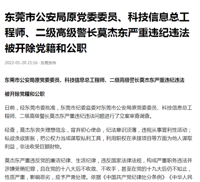 这里需要特别插播一人莫XX,一个大家可能很陌生的名字,但不要小看此人,他的工作不可小觑,能量更是巨大。2021年10月,莫xx涉嫌严重违纪违法,接受东莞市纪委监委纪律审查和监察调查。