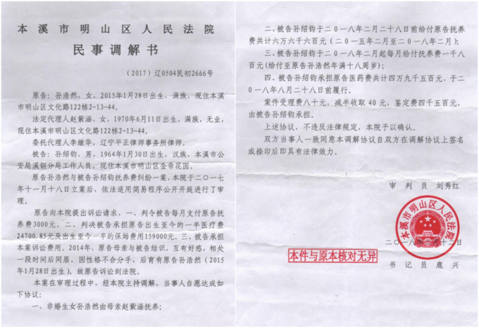 ——2015年1月28日,我与当时任职本溪市公安局溪钢分局政委孙绍钧的孩子出生,因为孙绍钧隐瞒自己的婚史,之前拿的假离婚证给我看,有了孩子他才说他还没离婚。2016年6月份,我到省纪委去找孙绍钧的表哥李某光,当时李某光任职辽宁省纪委书记,我去找李某光是因为他是辽宁省纪委的领导,再一个是孙绍钧的表哥,无论于公于私,李某光都会管此事。当时,我进不去辽宁省纪委的办公室,门卫说让我用邮局邮寄信件的方式,李某光书记就能收到信件,我就把我和他表弟孙绍钧孩子的事写在信里,还有孩子的照片和孩子的头发,一起寄到辽宁省纪委,当时是邮局邮寄,李某光收到了信件,我也收到了邮局发给我的提醒对方签收的信息,后来我又用手机给李某光发信息说了孙绍钧和孩子的事情。因为孙绍钧胡搅蛮缠说孩子不是他的,要求做亲子鉴定,于是2016年12月份,我在明山法院起诉了孙绍钧,明山法院通过市法院摇号到辽宁省卫生厅血液中心做了亲子鉴定,2017年2月份明山法院判定孩子是孙绍钧亲生,有鉴定书在!