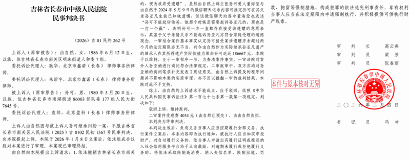 本站讯 2026年春节刚过,吉林省长春市人由自然就向吉林省高级法院提起再审申请,原因是在与孙可的被继承人债务清偿纠纷一案,由自然不服长春市南关区法院(2025)吉0102民初1567号民事判决及长春市中级法院(2026)吉01民终262号民事判决,其再审申请核心直指原审程序严重违法,关键证人未出庭接受质证、法官私自调取证言并直接作为定案依据等问题。同时,由自然已向相关部门提交举报材料,指控审理该案的长春市南关区法院邓翔匀法官在案件办理中滥用职权、枉法裁判,漠视当事人合法诉讼权利。
