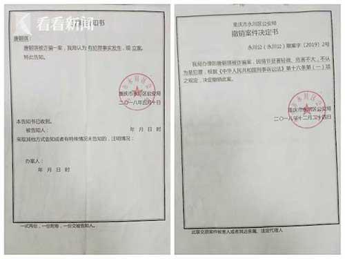 吊诡的是,2018年12月24日,永川区公安局作出《撤销案件决定书》表示:“我局办理的唐朝琪被诈骗案,因情节显著轻微、危害不大,不认为是犯罪,根据《中华人民共和国刑事诉讼法》第十六条第(一)项之规定,决定撤销此案。”