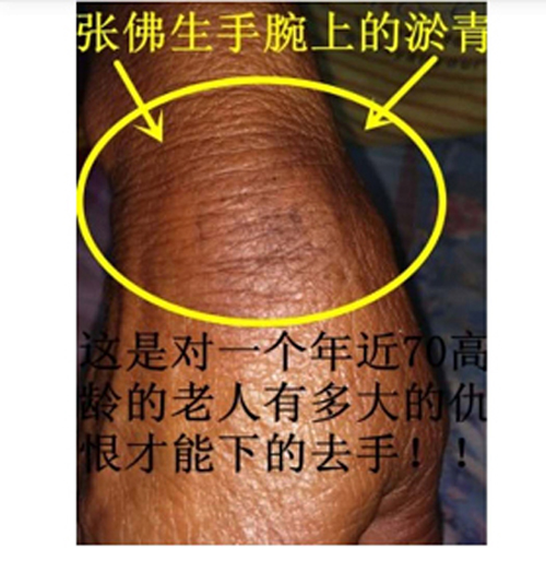 2020年8月7日上午,在征地现场阻拦施工的贾焕富及67岁的妻子张佛生老人被一群不明身份人员推搡、殴打,控制。还被乡长王某军用泥石头从背后打了一下,至今后背还有淤青。现场除不明身份人员,还有海北头乡乡长王某军、新发村书记宋某钟及一些乡、村干部均在现场。