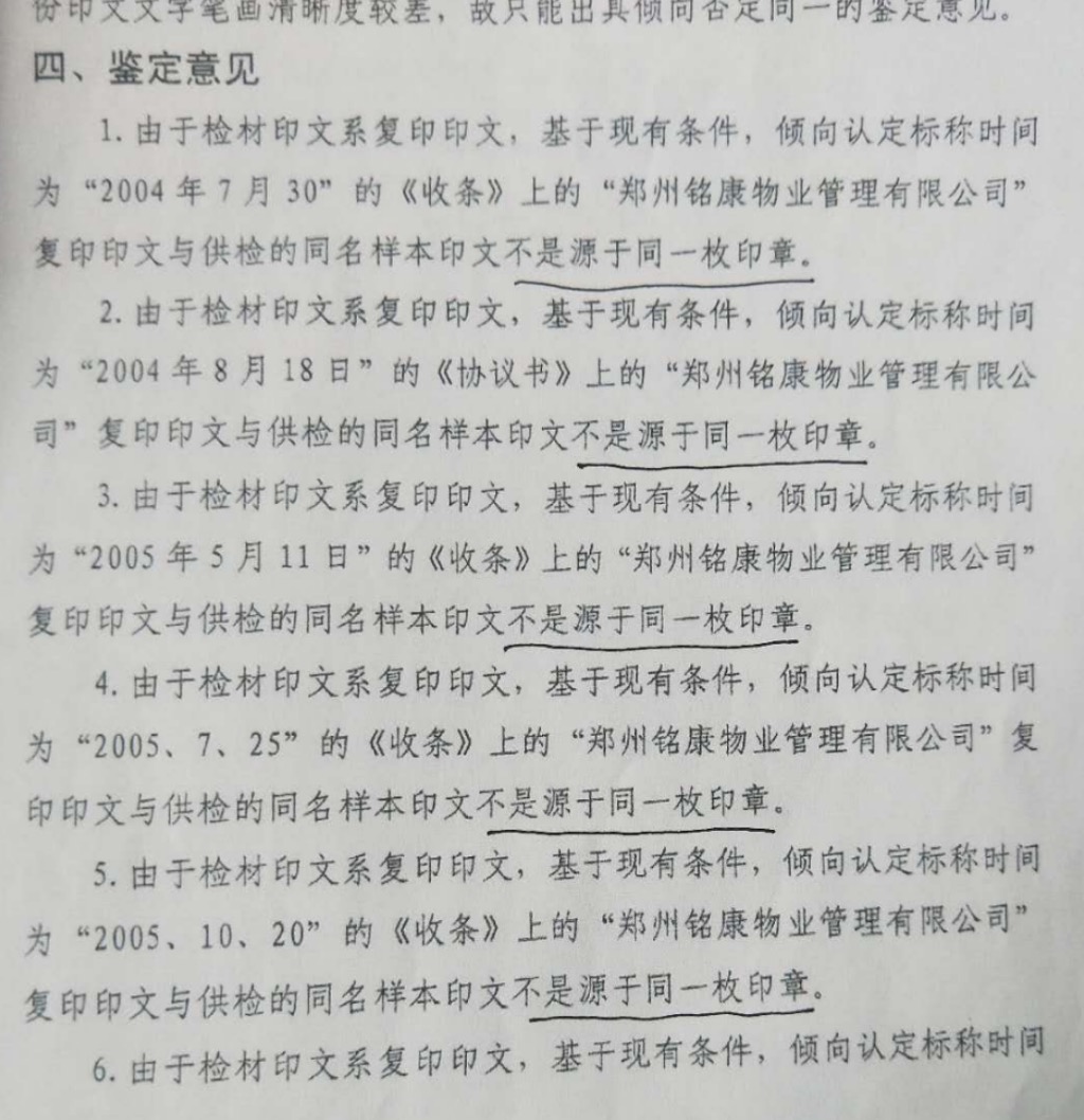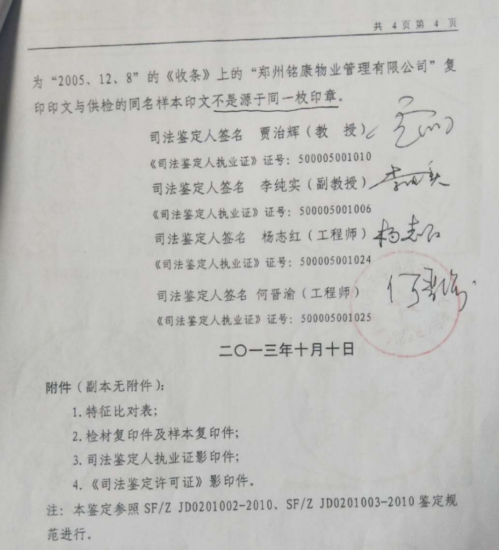犯罪嫌疑人周曦之与周宁勤父女虚假诉讼诈骗郑州铭康物业管理有限公司数亿元资产,西南政法大学司法鉴定中心2013年、2020年两次鉴定周氐家族向法院和工商局提供的涉案印章均与受害单位在工商局备案的公章不是同一枚印章见图片。