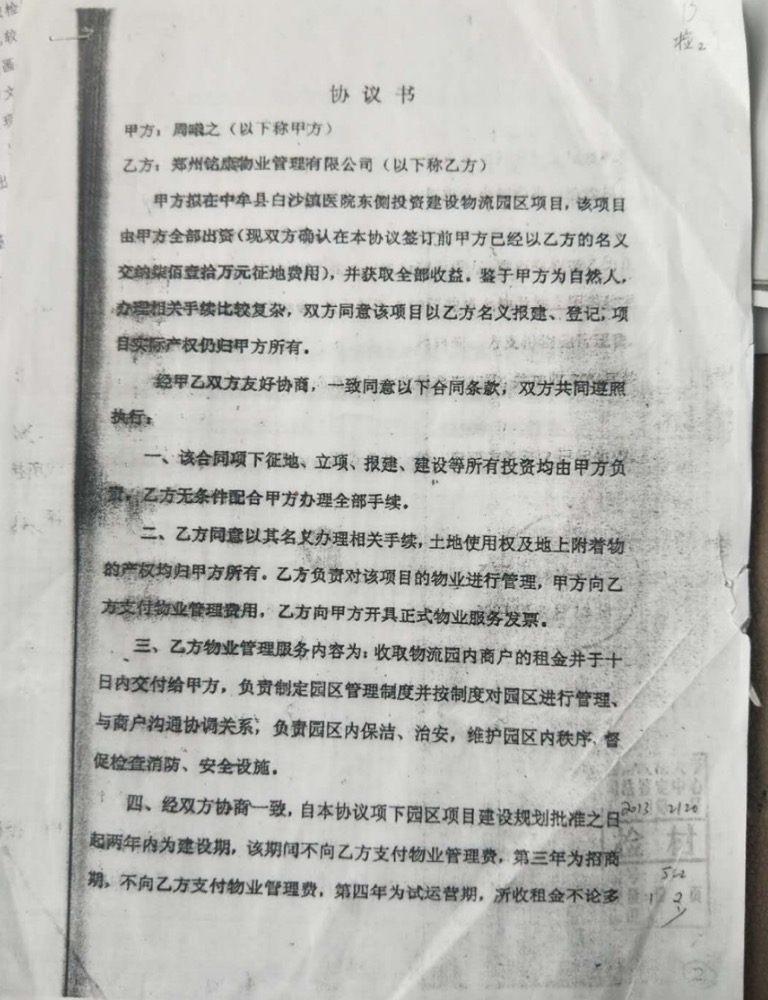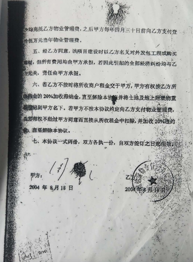 在郑州市工商局纠正非法变更股权期间,周宁勤一家人为了达到非法侵占郑州铭康物业管理有限公司的行为合法化,周氏家族犯罪成员周曦之与周宁勤父女又在2011年3月伪造了一份漏洞百出假投资郑州铭康物业管理有限公司的协议的复印件,时间写在了2004年8月18日(该协议上的公章五星与同时期郑州铭康物业管理有限公司在工商局备案的公章明显有差异)见两个印章对比图片。