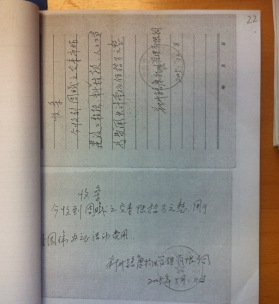 周宁勤父亲周曦之与周宁勤母亲伪造假投资财务收据复印件见图片