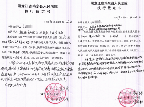 2020年,天谷公司通过上诉,请求依法判令停止执行鸡东县法院作出的执行裁定书。没想到,2020年10月,鸡东县法院又裁定继续扣留天谷公司的仓储租金190万元。而且另一名与刘某同样的债权人金某也申请了强制执行东富合作社80余万元欠款,2021年,法院也作出了冻结天谷公司仓储费80余万元的裁定。
