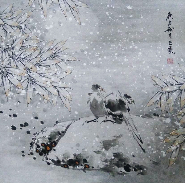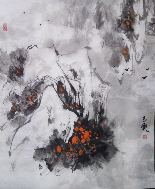 刘玉宽热爱中国的传统文化,通过对大自然以及现实生活中的观察、提炼,用中国传统笔墨,点、线、渲染等绘画特有的形式、语言,抒发自己的感情。以及对大自然、动物、身边一切美好事物的热爱与向往。