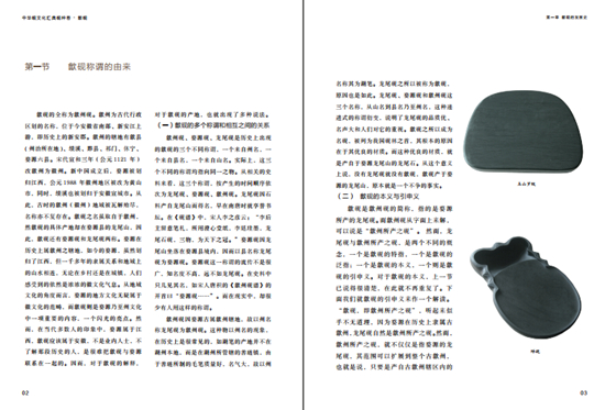 《歙砚》简性、歙砚的制作技艺和歙砚的鉴赏收藏等内容,具有较高的专业性、史料性、学术性和可读性。书中一些新的内容,令人注目。例如对明代龙尾石有无开采的深入研究论断;对历史上悬而未决的龙尾石中庙前青、庙前红的具体产地,以实物的研究、实地的勘察而得以确定;还有歙砚的三要素、龙尾石的三大特征、砚的实用与欣赏、歙砚造型的分类、雕刻图案形式的分类、砚的雕刻手法和雕刻艺术的论述等等,无不令人信服和受益。