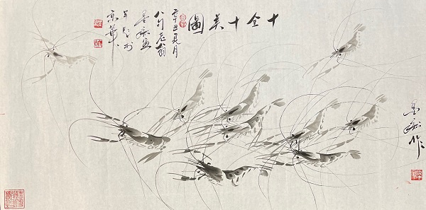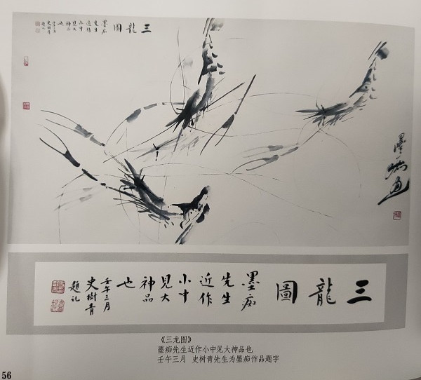 后来墨痴到北京师范大学红楼去拜访启功先生,两人相识。更有海外媒体评价“当今中国画虾者,唯有墨痴与齐白石齐名”。齐白石后人也称道他是在齐白石基础上作了继承发展提高,墨痴却以“白石门外”而自居。