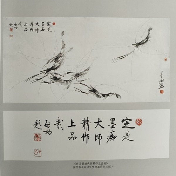 没过几天,便取回由启功先生题名的“虾王墨痴大师画集”。置于案头,后又交启功的秘书付建华为其治印“墨痴画虾启功赞之”,并言墨痴之虾唯恐在30年内没有人能够超越。