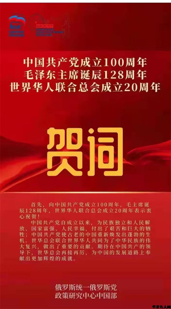世华会快讯: 2021 年 12 月 26 日,在北京万寿宾馆举办了建党一百 周年.毛泽东主席诞辰 128 周年暨世界华人联合总会成立二十周年庆 典。社会各界代表近百人参加了会议。