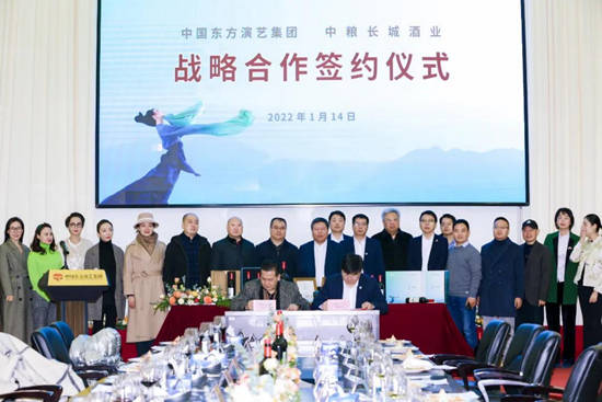 1月14日,中国东方演艺集团与中粮长城酒业在京签订战略合作协议,并隆重举行舞蹈诗剧《只此青绿》联名葡萄酒新品上市发布会。