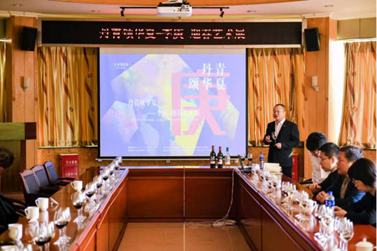 长城华夏酒庄总酿酒师董宣为现场嘉宾详细介绍了长城华夏酒庄的历史和地理风貌特征,本次联名款产品的生存酿造工艺特点,细致讲解了本次产品的独特价值。