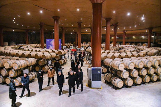 开幕式现场结束后,长城华夏酒庄相关人员陪同到访艺术家参观了亚洲大酒窖及酒厂内部环境,详细了解酒窖的建造历史和故事,酒庄的生产工艺和发展历程。