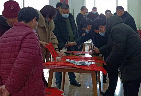 山东新闻网:(刘延栋 吕英杰)春节是中华民族祈福迎祥的传统节日,贴春联则是中国人过春节的文化传统之一,写春联,送喜庆,更是弘扬中华民族优秀传统文化的良好形式。1月29日,山东省聊城市市直书画家协会技师学院分会的几名书法家与聊城市技师学院工会的领导们一起来到九州国际社区和金柱东苑小区开展了“迎新春,办实事,送温暖”主题活动,希望通过这种形式,让更多群众感受春联的魅力,营造新春喜庆祥和的气氛。