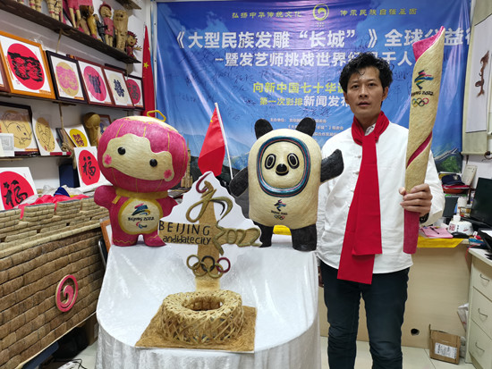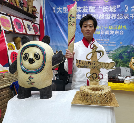出生于农历甲寅虎年十二月十四日的中国头发雕塑发明家黄鑫先生为了在历史的长河中给“冰雪相约”之时应运而来的壬寅虎年留下实物印迹,于北京冬奥会倒计时一百天(2021年10月24日)之时,率领他的团队,夜以继日,用时3个月,将他在全国范围内收集到的56个民族人、奥运冠军、世界冠军、名人名家、企业家、爱心人士、长发世界纪录保持者和冰雪爱好者等人士的头发,运用独特的发雕艺术、复杂的制作手法,经过头发收集、拆分、挑选、清洗、消毒、晾晒、长短区分、色彩处理、绘图、雕塑等多道工序,最后创作出了长72公分、重1.4斤的奥运圣火“火炬”,高56公分、重5.6斤的中国北京冬奥会吉祥物“冰墩墩”和冬残奥会吉祥物“雪容融”及长72公分、重5.6公斤的“双奥之虎”,代表中华56个民族,14亿人民在新中国成立之后的72年腾飞史;同时祝愿中华民族在未来的日子里如虎添翼,迅猛发展,我们的祖国更加繁荣昌盛;也希望中华民族在这次“冰雪相约”之后,能与世界各族人民一起点亮梦想,同创温暖、和平、友善、人类命运共同体的美好世界,一起向未来。